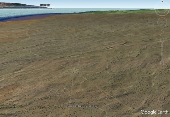 ハワイ島北部のコハラ(Kohala)の西海岸の溶岩台地に3つの放射状の遺跡がありました。 冒頭の図も、下記の1つめの座標での、グーグルアースのビューになります。